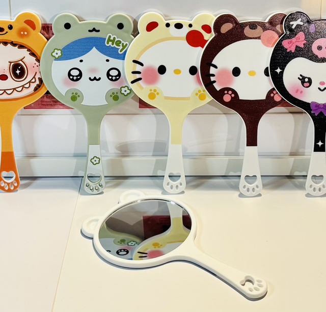 Lovely character themed hand held mirrors. Stand 18cm tall and 10cm at the widest.