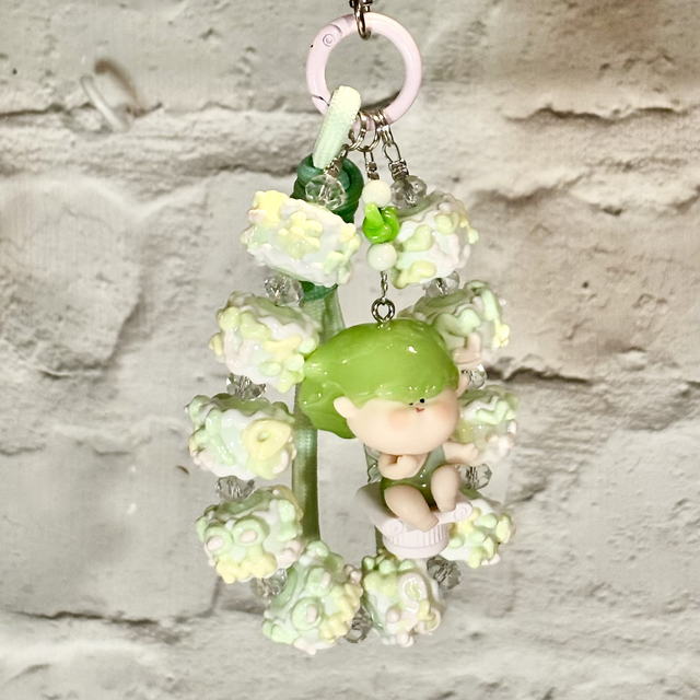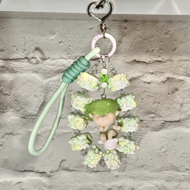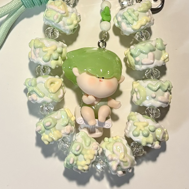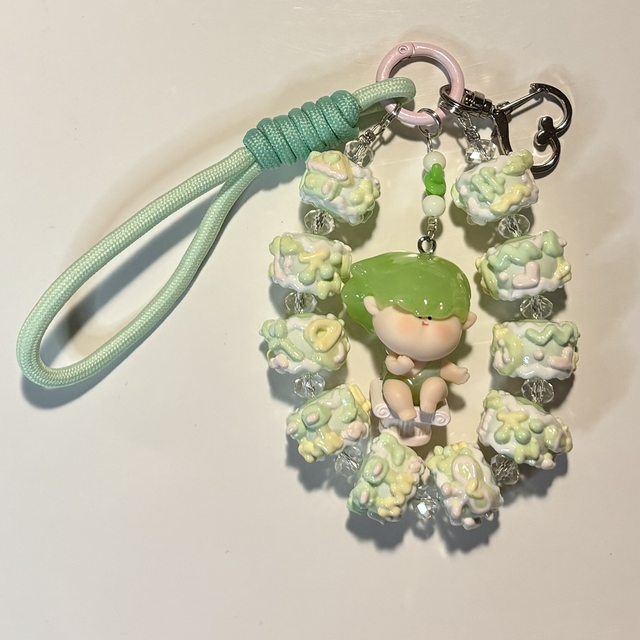 Beautiful handpainted beaded keychain with focal authentic figure doll in Green design