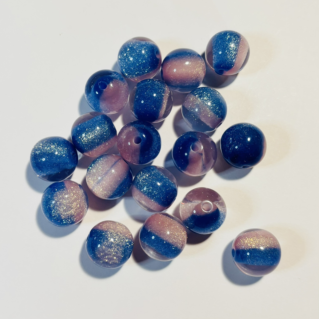 Beautiful Sparkly Glittered pink/blue 16mm beads x 5