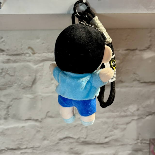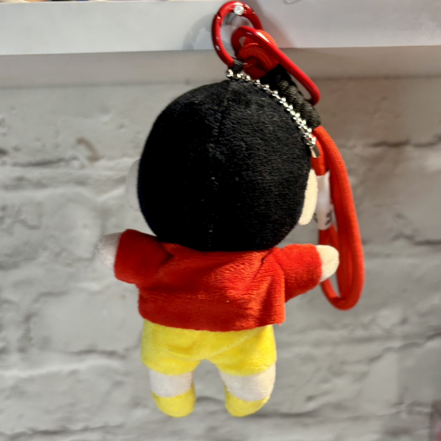 Cheeky Anime character Shin Chan, lovely plush replica pendant keychain with rope wristlet. Choose from 2 colours of his outfits, blue or red!