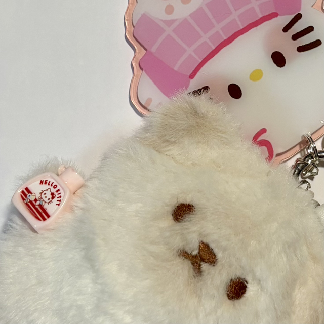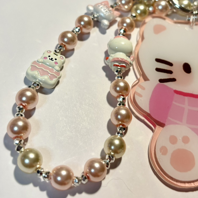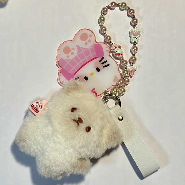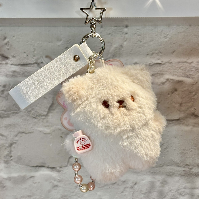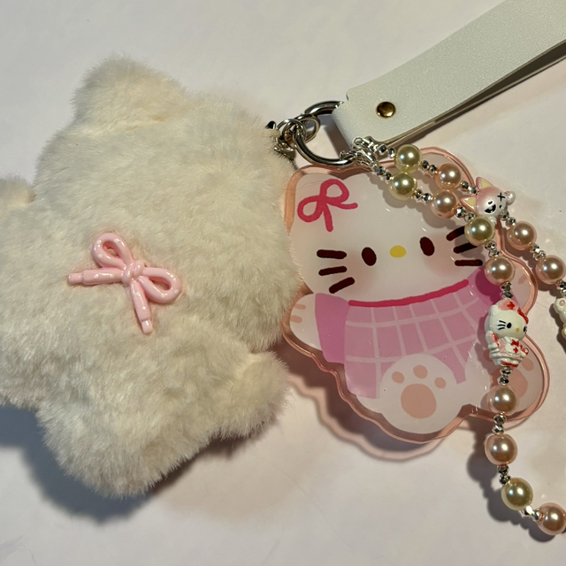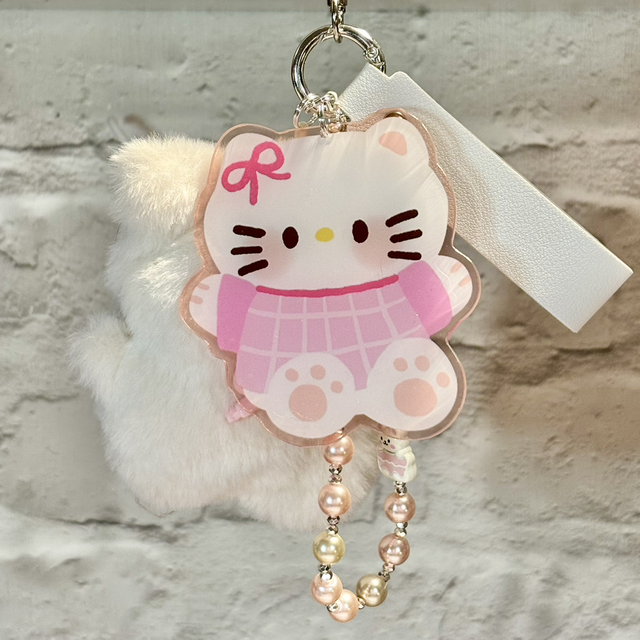 Cute Cat plush beaded keychain with large Kawaii Cat acrylic