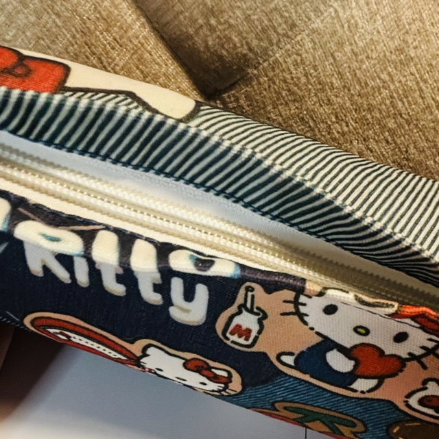 Lovely zip bag perfect for carrying make up, stationary or your useful bits & bobs in a handbag! Different design on front and back. Measures 25x20cm in cute Kitty fabric. Handmade. So cute!