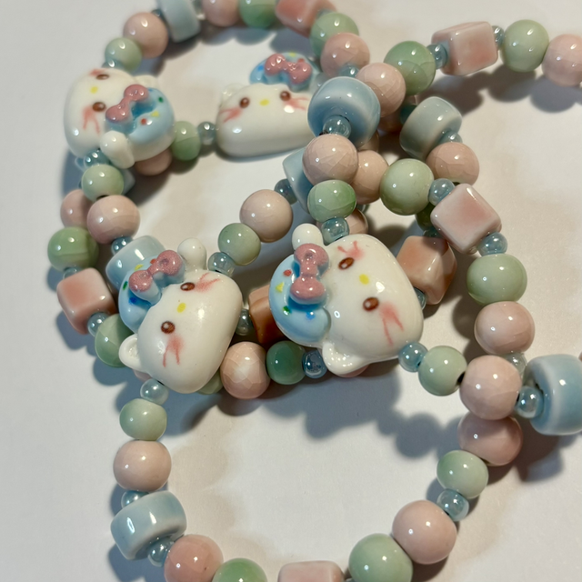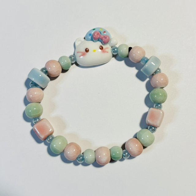 Cute elastic handmade ceramic pastel beads with Kitty focal beads.