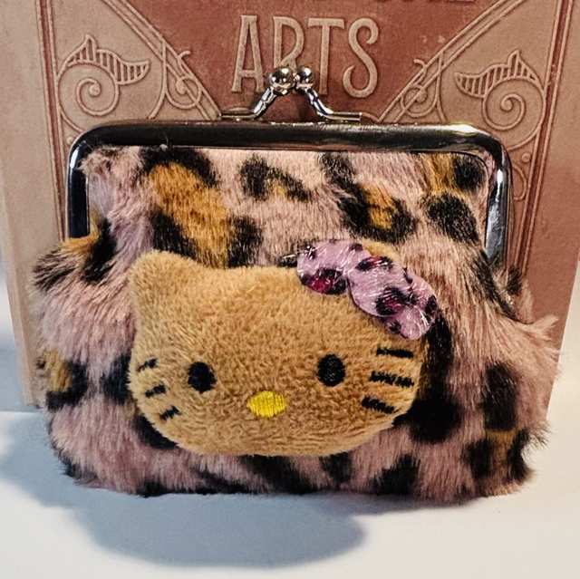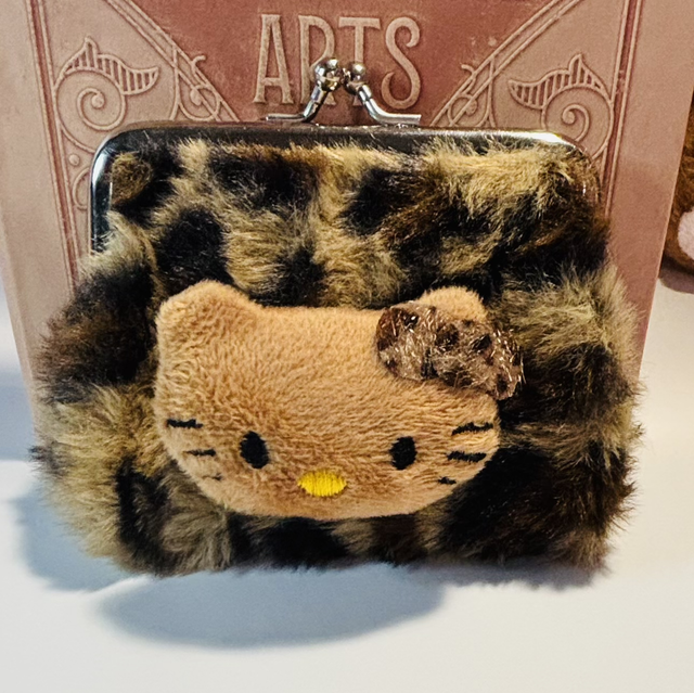 Lovely leopard print fur clip purse. Comes in 3 print colours, taupe, lilac and brown. Each purse has a Hello Kitty plush embellishment to the front. Good size and would make a great gift or treat yourself! All my items come cutely packaged so ready to gift.