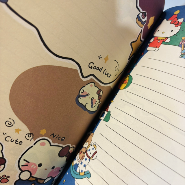 Beautiful Hello Kitty hardback notebook, just a little smaller than A5 size. Lovely colourful pages inside with HK designs. Very happy cute notebook!