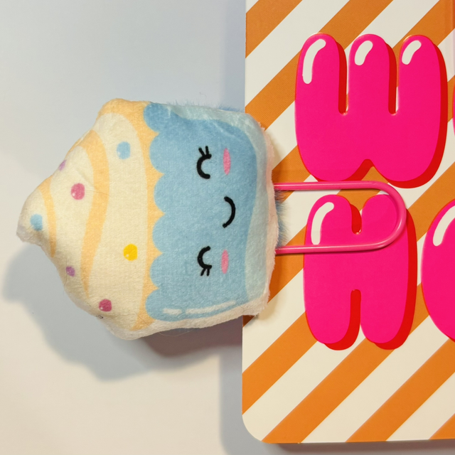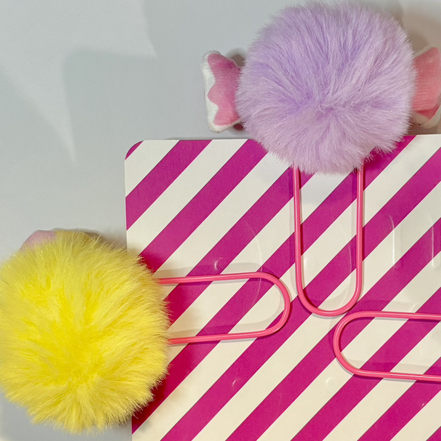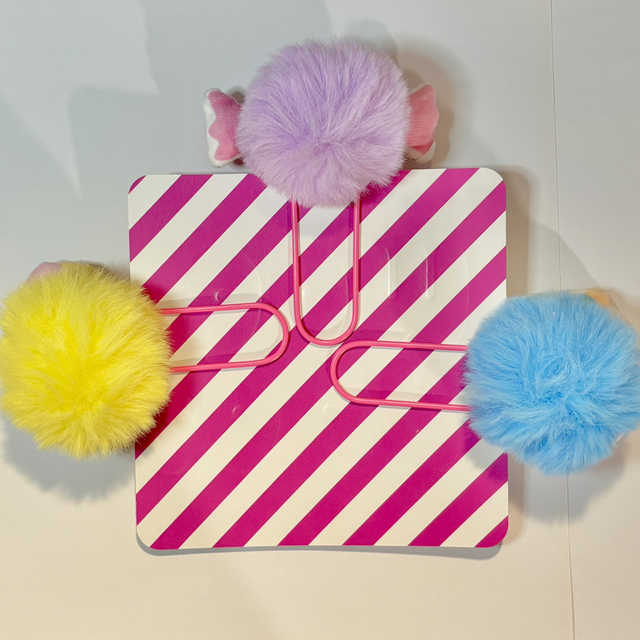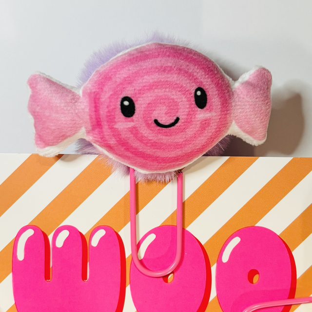 Super cute Kawaii plush jumbo paper clips! Great for marking out pages for college/school work, journals and diaries. Sweet and fun! Each Kawaii character, Candy, Cupcake & Doughnut has their own co ordinating fluffy pom pom on the back. All my items come cutely packaged ready to gift. Would make a unique gift or treat yourself and smile at these cuties!