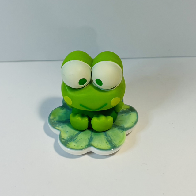 A fun Keroppi Sanrio frog Lilly pad ornament. Stands approx 4cm tall and 4cm wide. Created using an authentic Sanrio Keroppi figure. Love him!