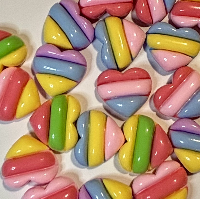 Lovely Colourful Heart flatbacks x 5 mix 2.5cm wide