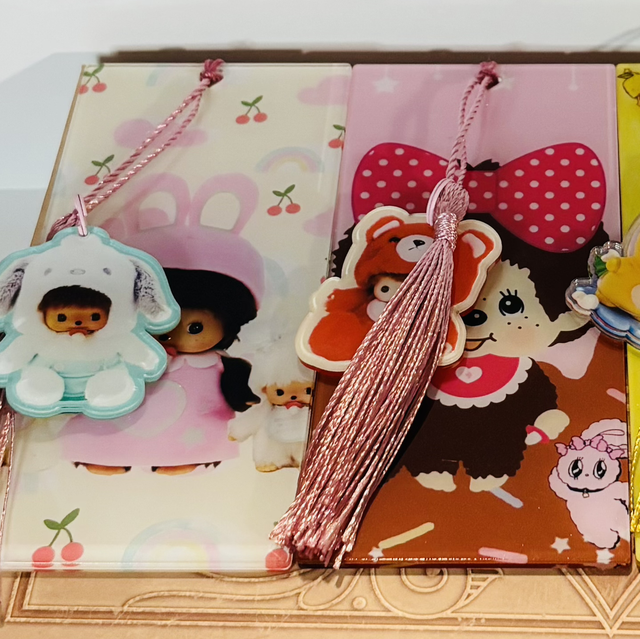 Monchichi inspired Acrylic bookmark with tassle & charm various designs