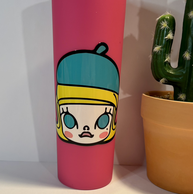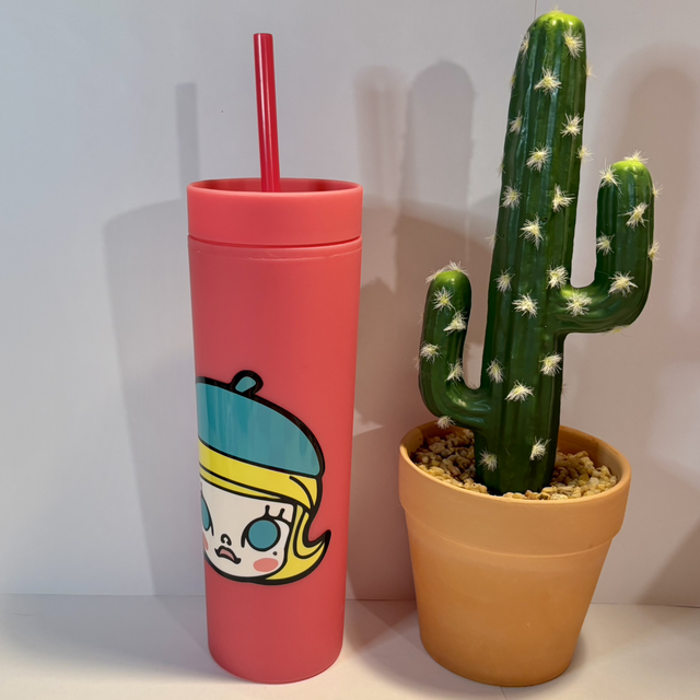 Lovely Molly hand created and inspired straw cup in pink. Great for all Molly fans! Gorgeous iconic image of Molly.