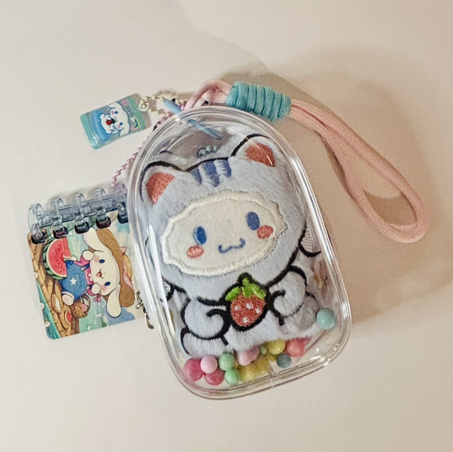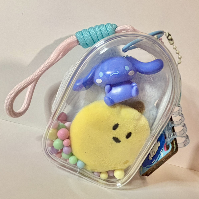 Cinnamoroll themed keychain or handbag charm. PVC bag contains cute Cinnamoroll and mini lemon plush together with a matching figure. Finished with matching Cinnamoroll charm and book. Please see pictures for detailed visual description. Very nice keychain and one of a kind. Will come cutely packaged ready to gift.
