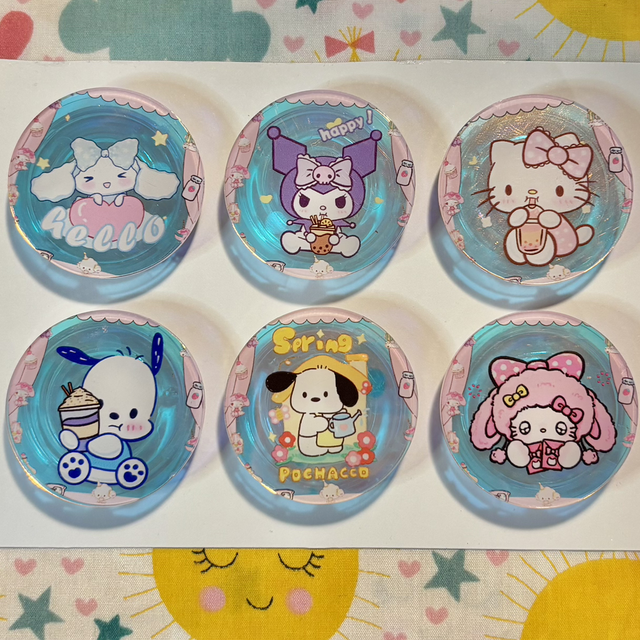 Sweet holographic style Sanrio family character pop sockets for mobile phones. Simply peel off to the adhesive cover to attach to your phone case. 6 characters to choose from.