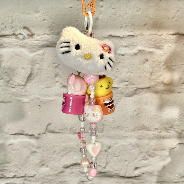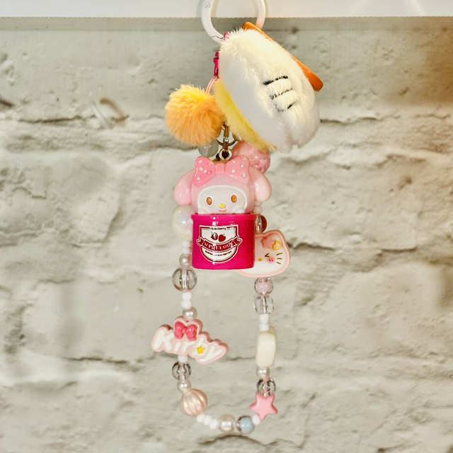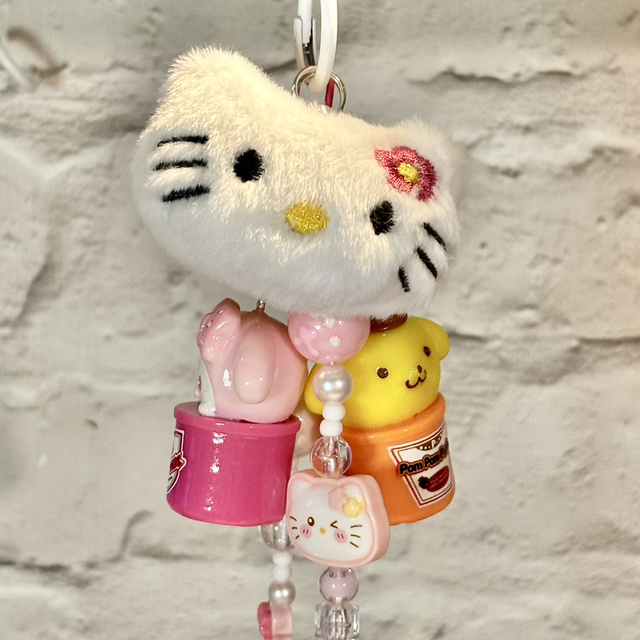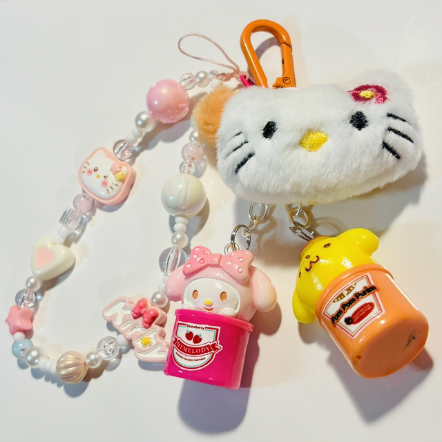 Sanrio Twinnies beaded keychain! 2 cute Sanrio figures with a mini HK plush finished with a beaded chain. Very sweet fun and colourful! to hang on bags, in car, keys or as a decorative hanger around the home.