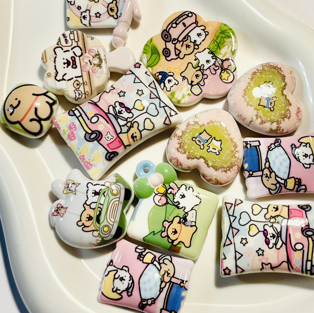 Set of 6 Kawaii Happy Puppy beads