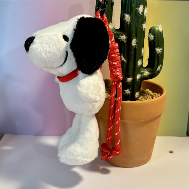 Snoopy inspired plush pendant, super soft & super lovable! with matching beaded rope detail.