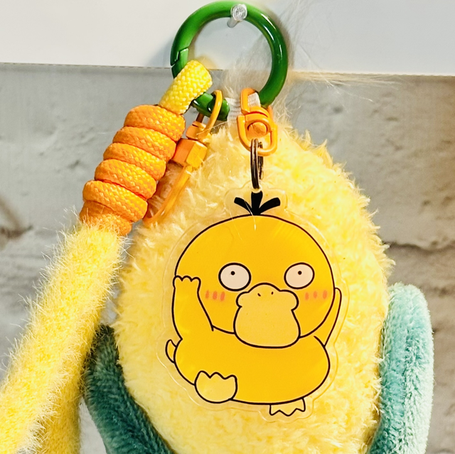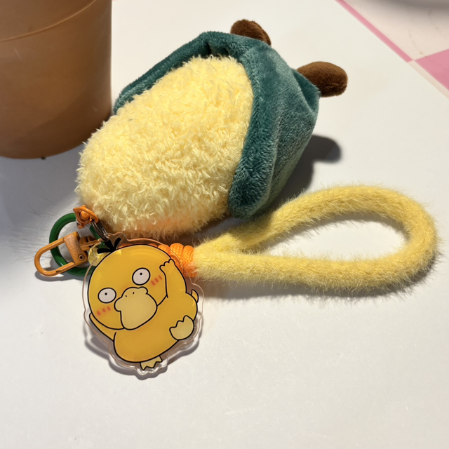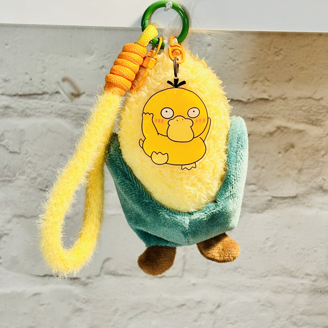 Check this little fella out and his cute tuft of hair! Kawaii themed Sweetcorn plush with a funny duck character acrylic added just for fun! Happy & cute plush keychain.